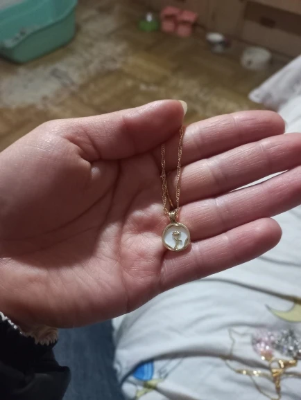 The necklace is very pretty, the downside is that it's fantasy, it's like plastic, it doesn't weigh much which is good, but honestly it will get damaged very quickly.