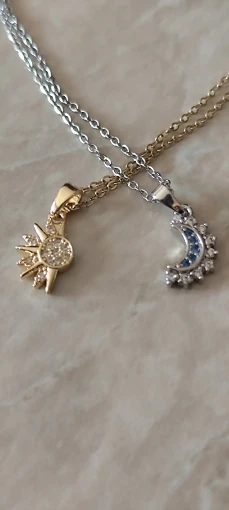 Octavia by Jewllista is a modern geometric necklace set featuring a uniquely magnetic bond between the sun and moon—two pendants that snap together with elegance and intention.