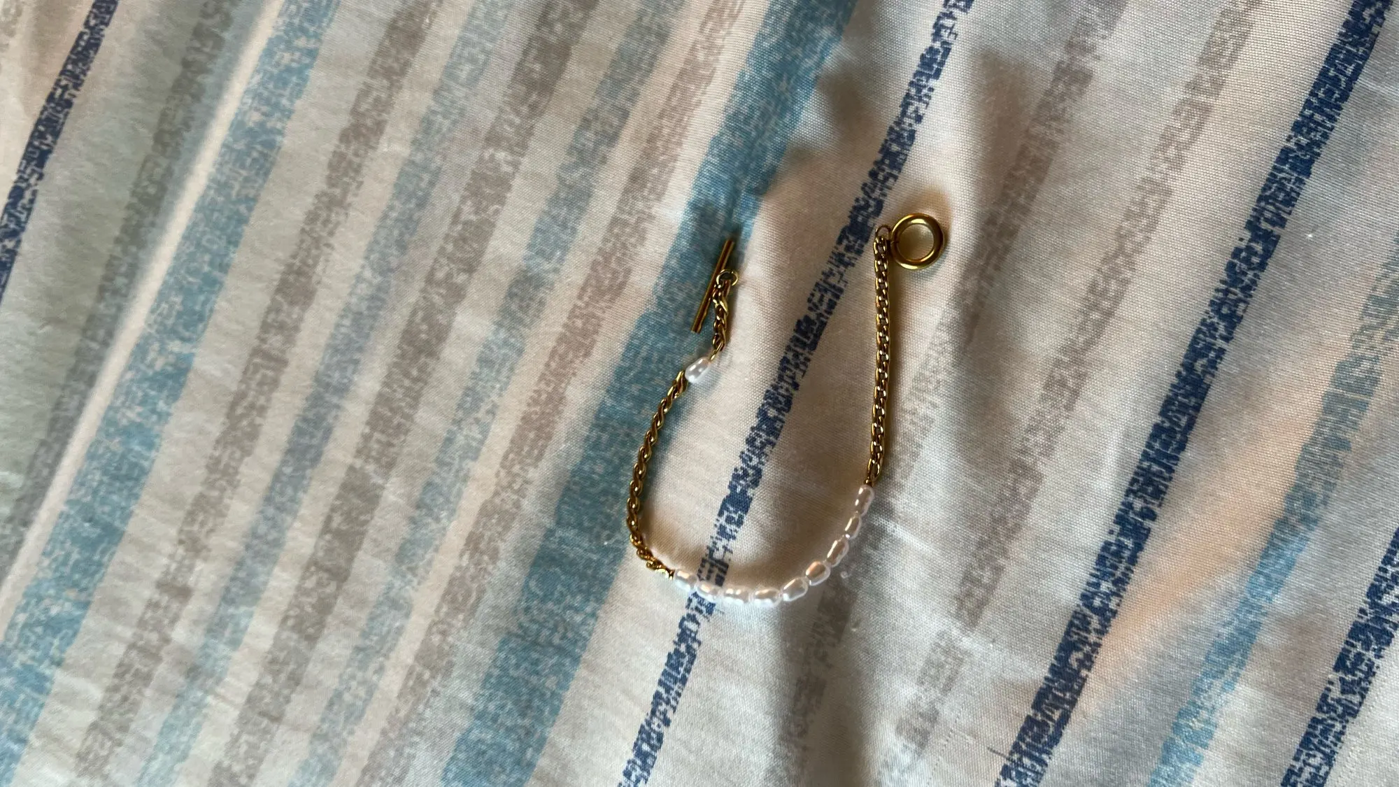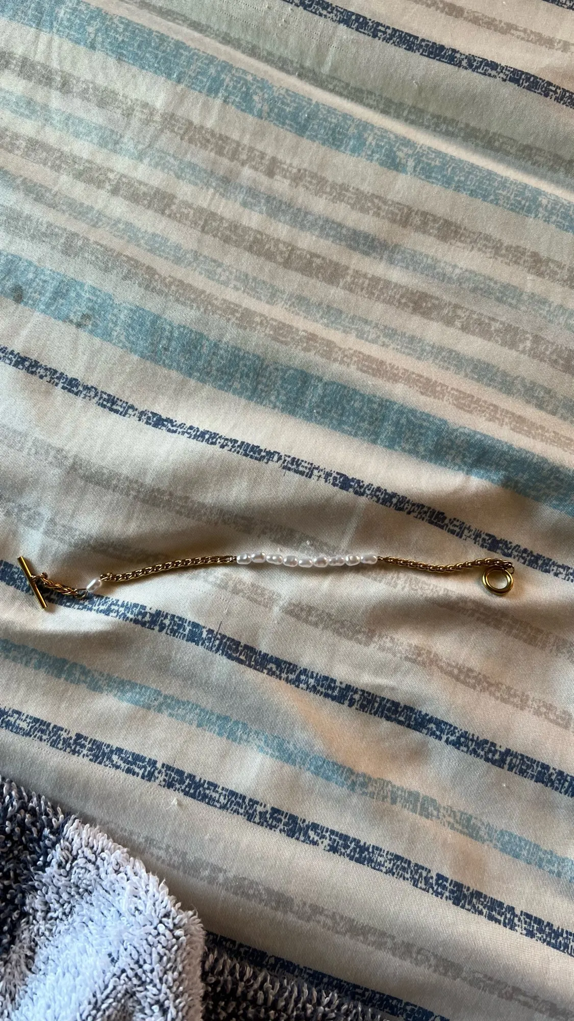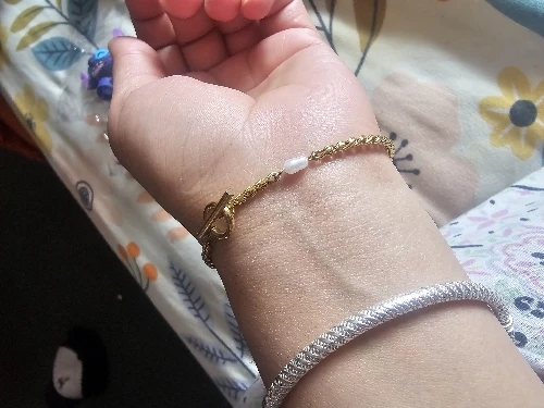 This chic bracelet blends classic elegance with modern flair. It features a half-and-half design, combining lustrous white freshwater pearls with a sleek gold-toned chain. Finished with a stylish toggle clasp, this piece offers a sophisticated balance between softness and edge, ideal for both casual and formal wear