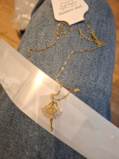 The Ashina Necklace features an elegant ballerina pendant highlighted with sparkling, fan-shaped crystal details for a graceful, artistic look. Its warm gold tone and delicate design make it a charming accessory for both everyday elegance and special occasions. A meaningful gift that celebrates beauty, artistry, and timeless femininity.