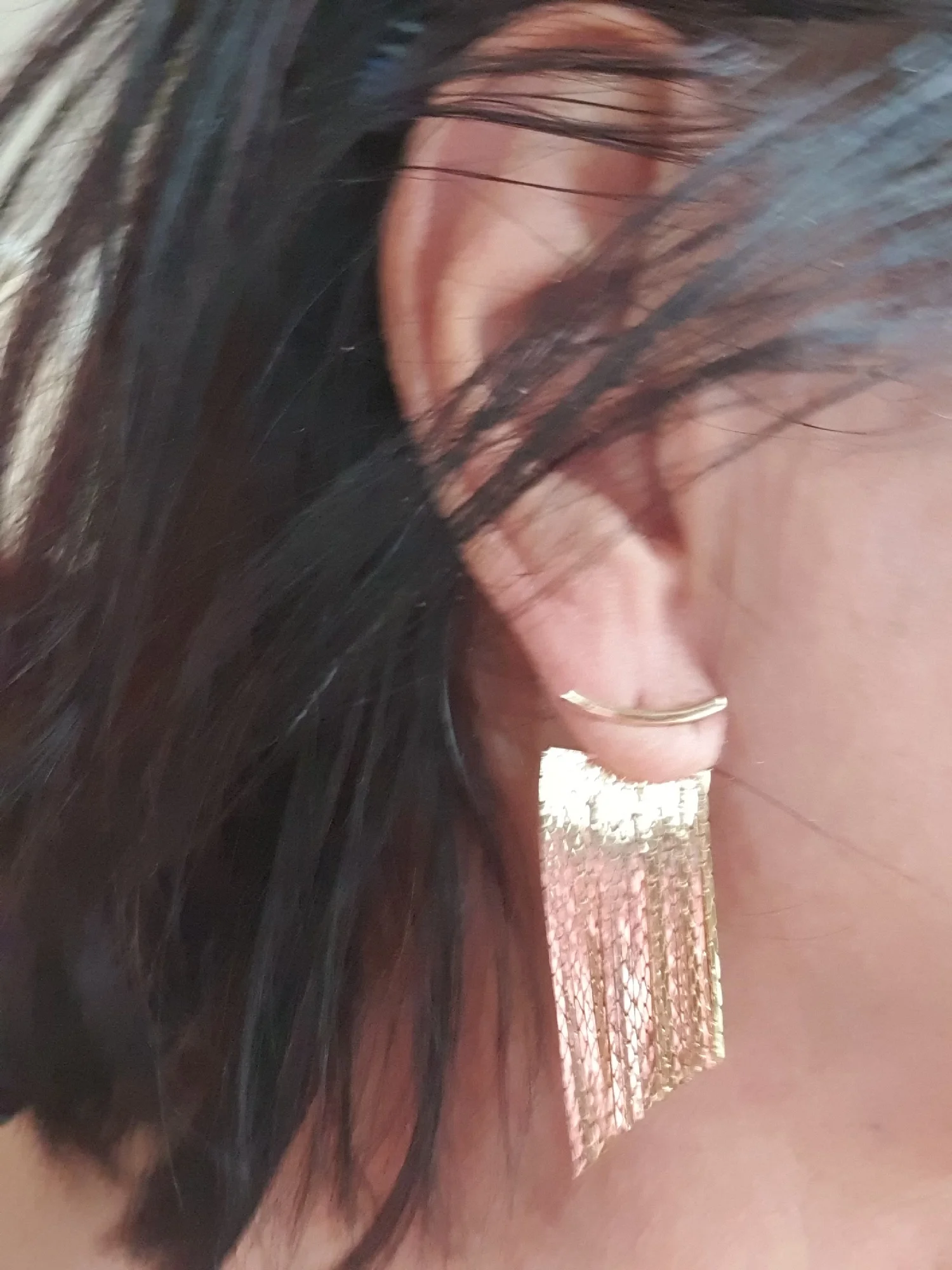 Add a touch of modern shine with the Bar Tassel Earrings “Daphne”, featuring a sleek gold bar paired with delicate cascading tassels. The lightweight, polished design offers effortless elegance for both daily wear and special occasions.