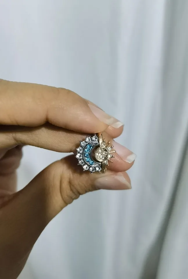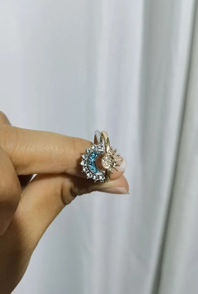a celestial-inspired jewelry set for women and girls. Bella adjustable ring set features dazzling moon, sun, and star motifs, designed for stacking or wearing solo. Crafted with sparkling stones and a sleek finish, it's an elegant accessory ideal for weddings, parties, or matching couple gifts.