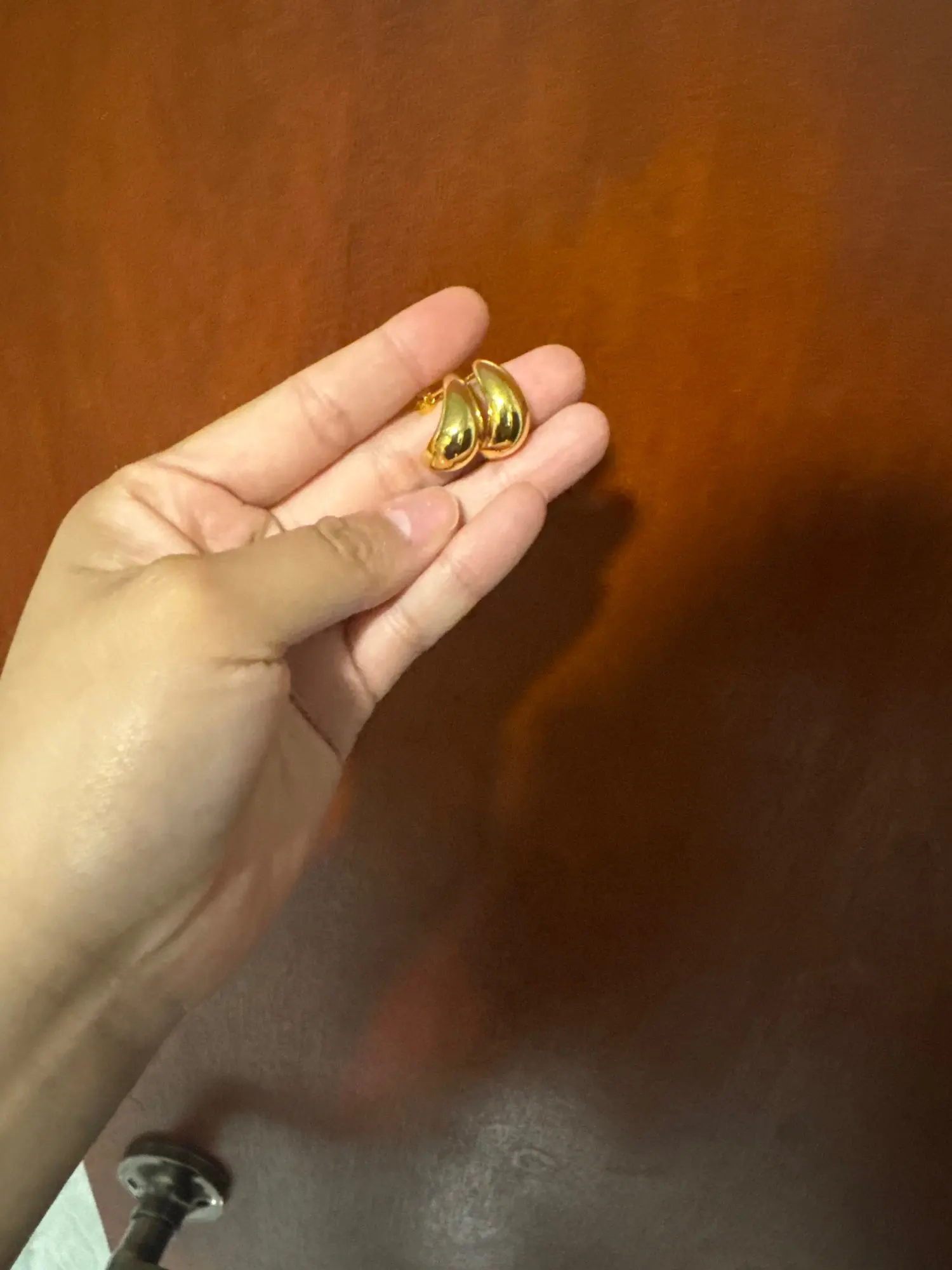 These bold, teardrop-shaped hoop earrings are fully encrusted with numerous small, brilliant-cut clear crystals. The gold-finish design