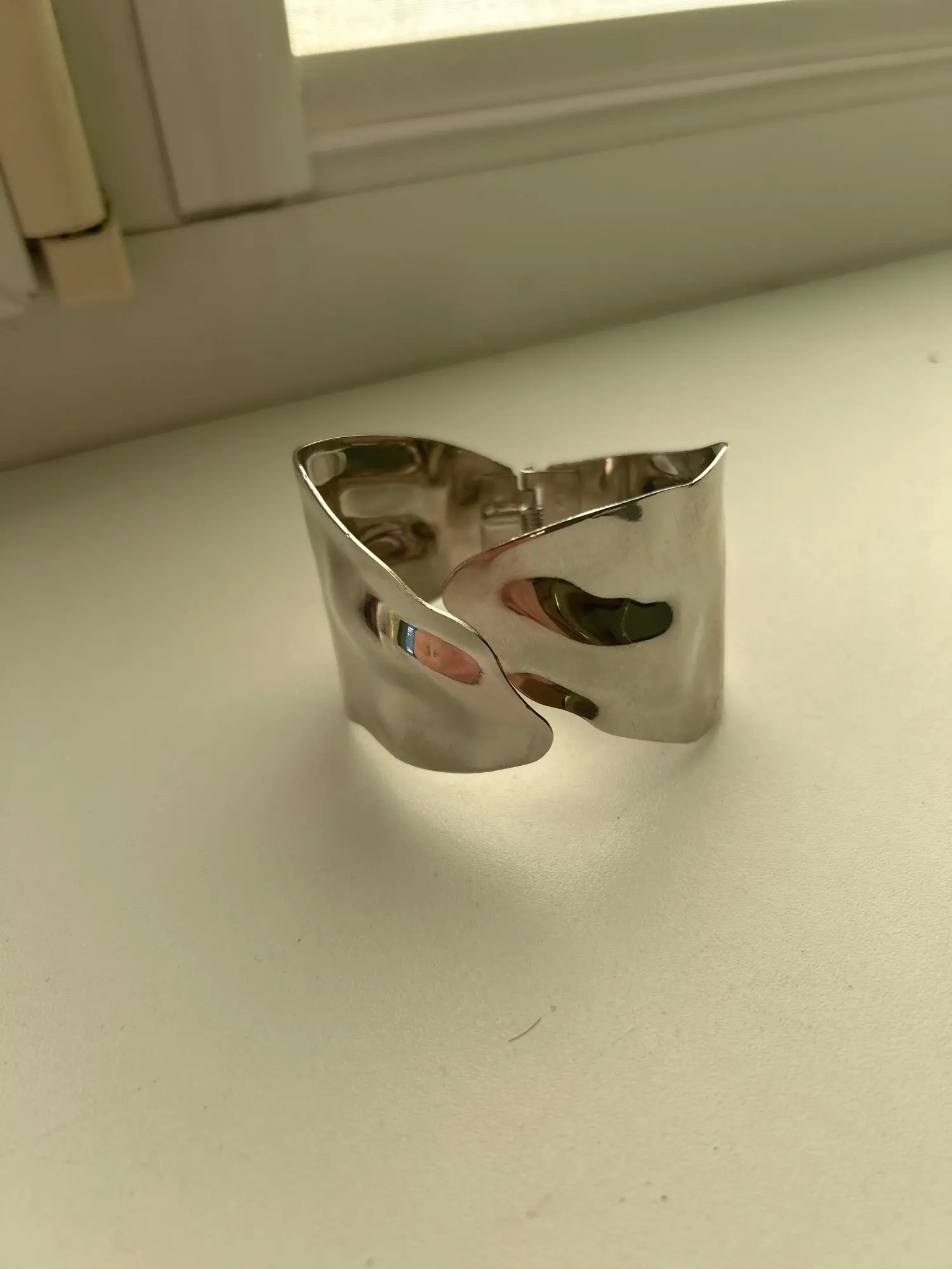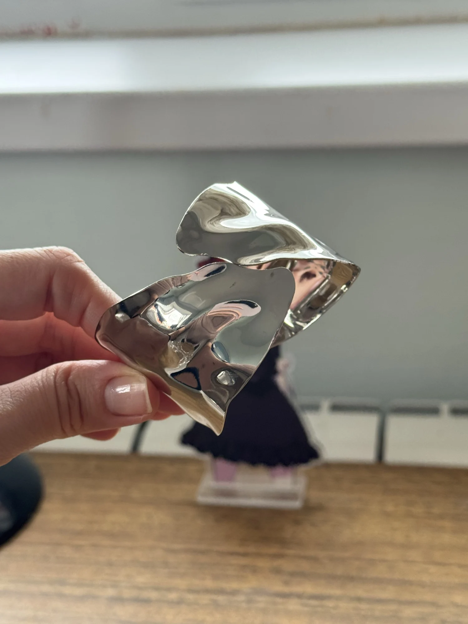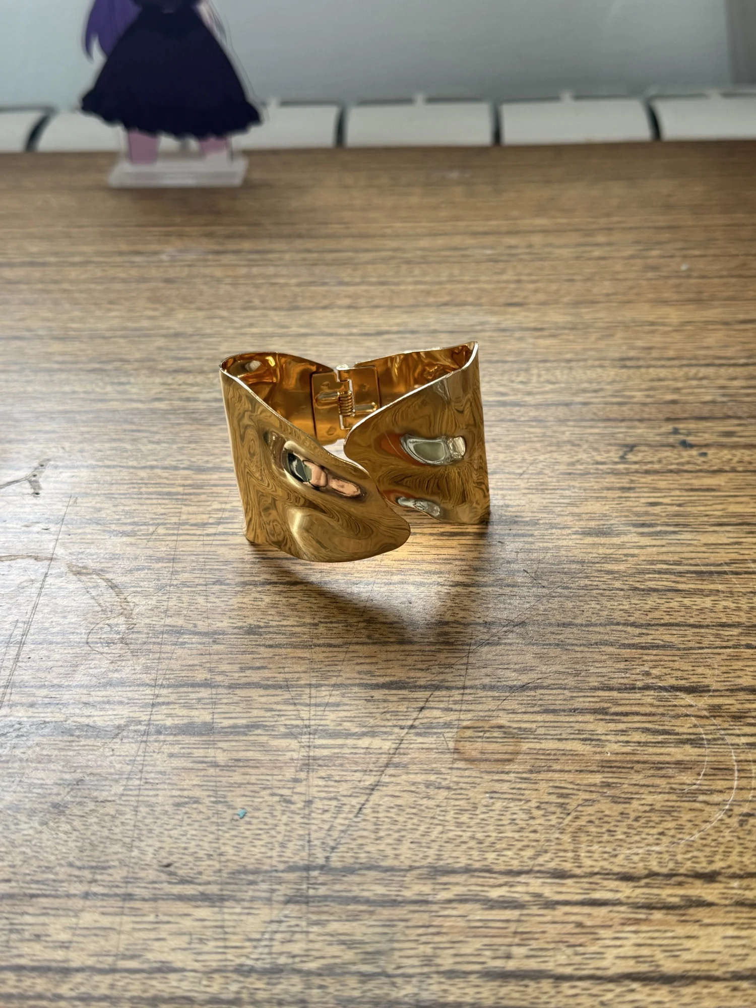 Geometric Metal Wide Cuff Bracelet – Bold, Glossy, Modern Elegance