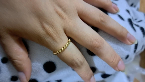 Helia ring features a continuous band of polished, creating a playful yet elegant texture. Its sleek, rounded design makes it perfect for stacking with other rings or wearing solo for a subtle statement. Crafted to add a touch of shine to your everyday look, it’s both timeless and trendy.