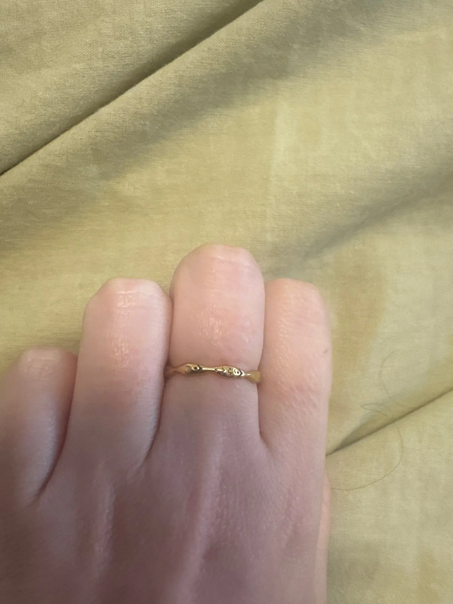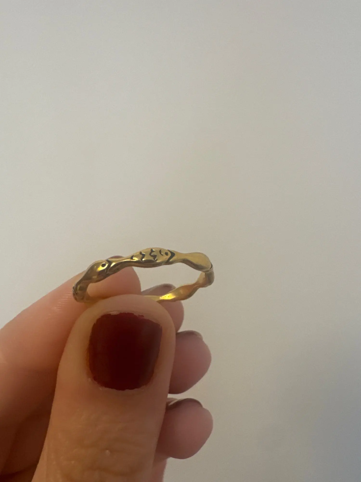 Chic and minimalist, Luna cute wave-shaped ring is crafted from stainless steel with 18K gold plating. A stylish and lucky charm, perfect for everyday wear or as a gift.
